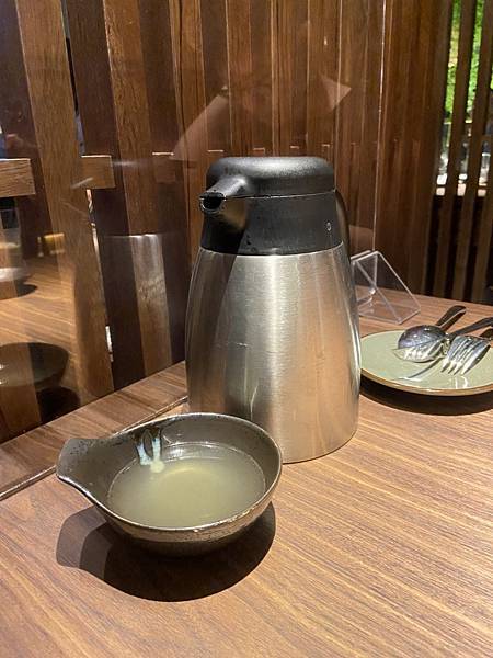 附餐會在點完餐後先送過來,肚子餓可以先喝雞湯、吃點飯墊墊肚子